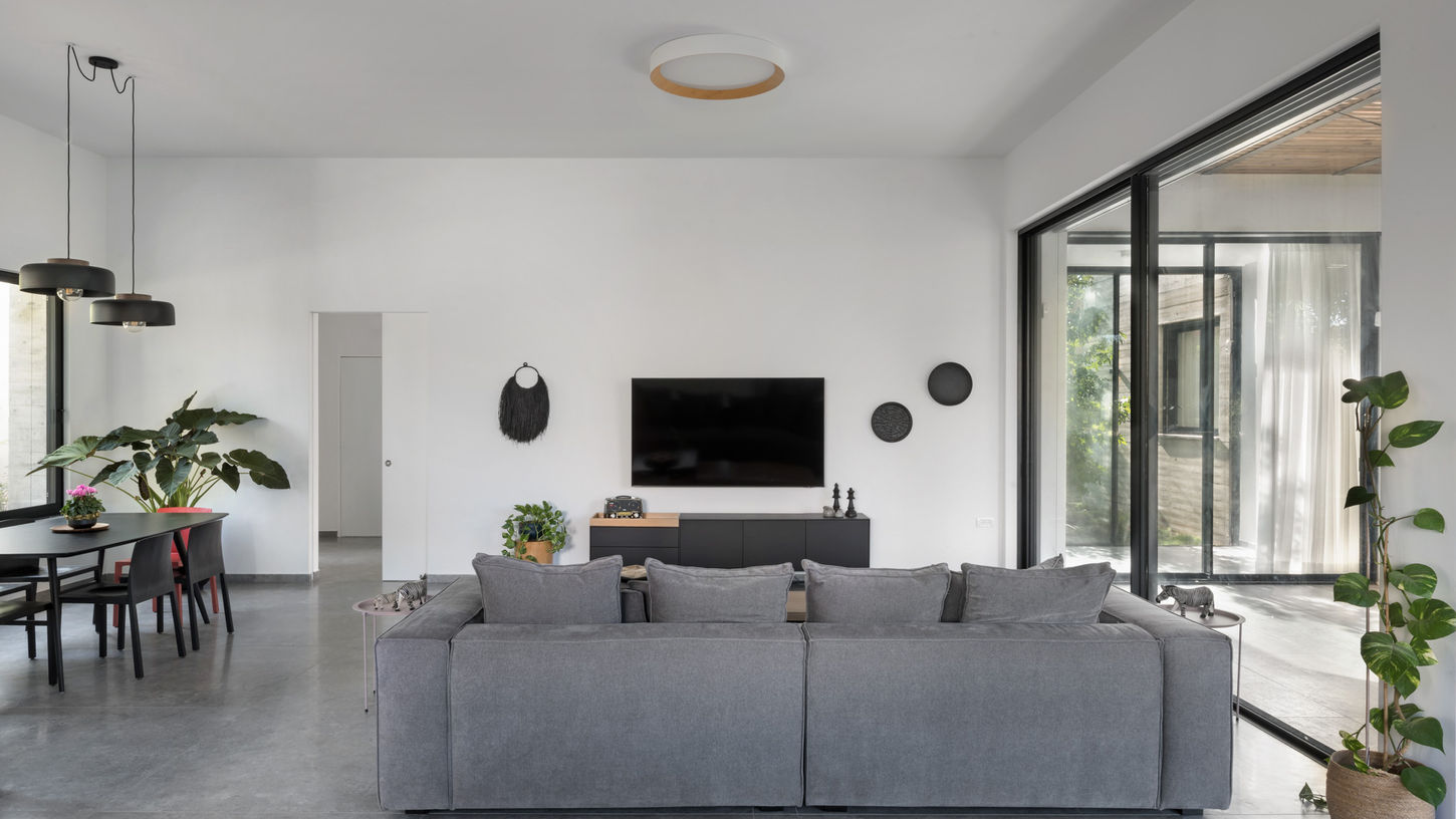 הקסם והייחודיות של הפרויקט, מתרחשים בעיקר מהחיבור בין הפנים לחוץ - הויטרינות הגדולות שתוכננו בחללים הציבוריים ובמעבר לאיזור הפרטי מאפשרות קשר עין רציף עם הירוק שעוטף את הבית